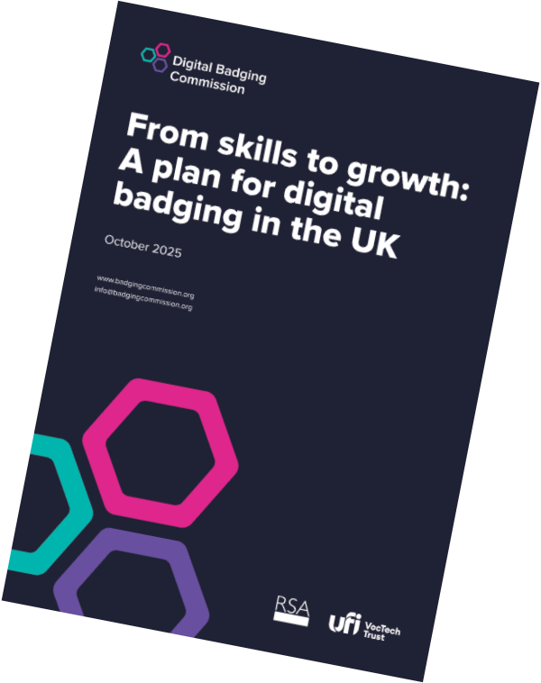 Many educators know learning happens beyond qualifications – but want reassurance that recognising it is credible and aligned with national thinking. The Digital Badging Commission, produced by RSA and UFI, recommends the use of digital badges to: