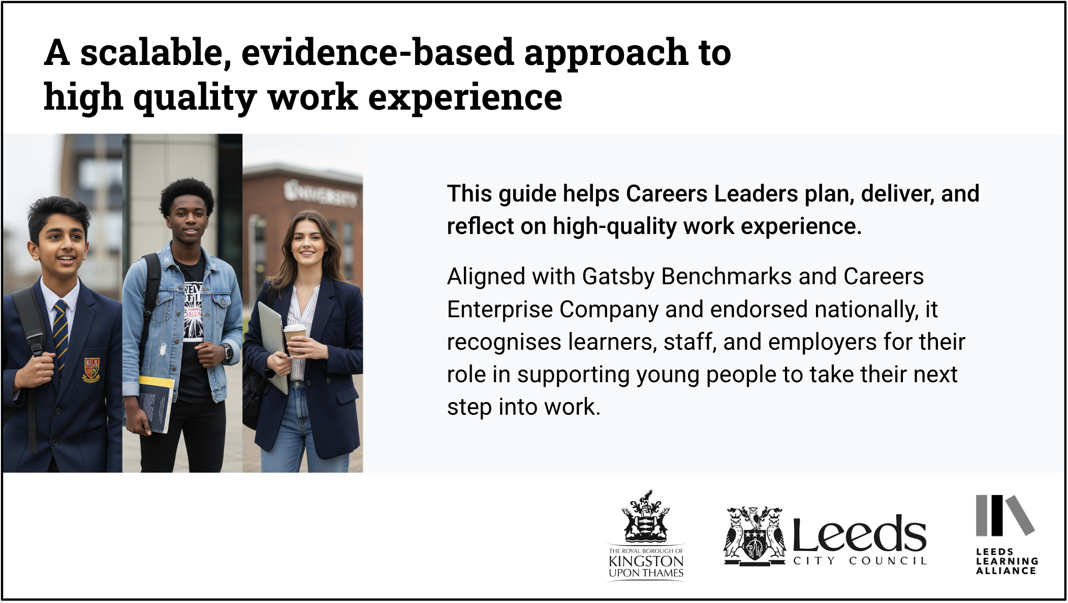 A structured Work Experience (WEX) programme with built-in digital badges for Learners, Educators and Employers. Designed with careers experts to raise quality, consistency, and impact.